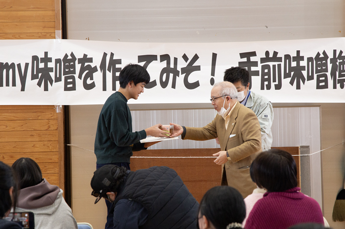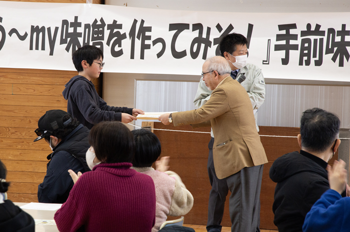 つづいて味噌の味比べですが、こうじ屋さんが準備をしてもらっているあいだに「味噌をつかったレシピコンテスト」の入賞者の発表が行われました。
